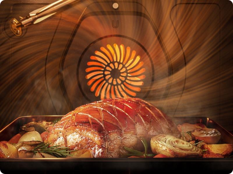 Reduces cooking time and bakes more evenly than a standard oven thanks to an in-oven fan that circulates hot air through the interior. Unlike conventional ovens where temperature can vary, this ensures quick, thorough, and consistent results every time.