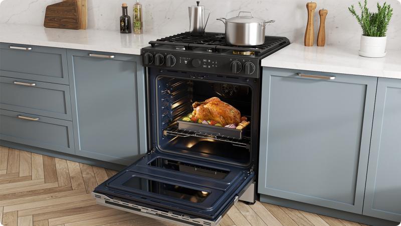 Save time and cook food evenly with a True Convection system, which is great for baking and broiling. A heated fan distributes heat all around the oven and keeps the temperature constant. So dishes are cooked quickly and thoroughly, no matter where they are placed or how large they are.