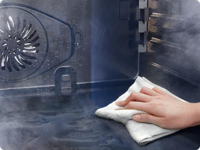 Get rid of light food soiling easily. Simply add water to the inside of the range and it will quickly create steam that loosens food particles left in the oven cavity, so food residue can be simply wiped away without scrubbing.