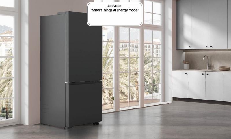 Monitor your refrigerator’s energy use. Using artificial intelligence, AI Energy mode* monitors its power consumption and predicts its ongoing usage. If the monthly electricity bill might exceed your target, you can turn on the energy saving mode, so the refrigerator uses up to 15% less energy**.