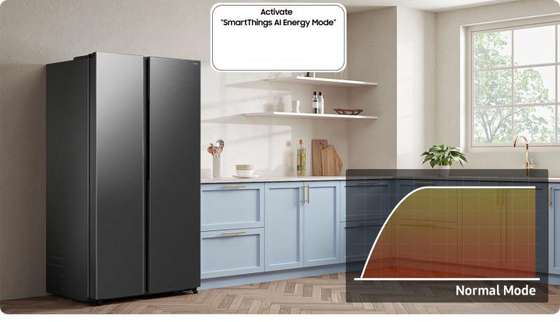 Monitor your energy consumption with AI Energy mode in SmartThings Energy. If your estimated monthly electricity bill exceeds your preset target, it gives you an option to go into energy mode. It optimizes the compressor speed and defrost cycle, based on your usage pattern and surroundings.