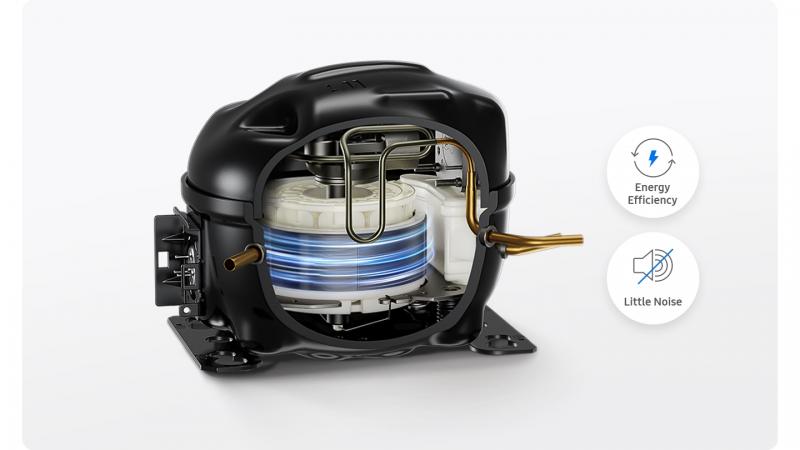 * Only available on the machine learning model products equipped with AI algorithms. As of May 2024, the AI Inverter Compressor is applied to the RF9000C, RF9000D, RS8000DC, RS5000DC, RB6000D, BRB6500D, RT6300D and RT6500D models. The applicable models may vary. The energy saving rate based on the AI algorithm is 7-11% depending on the model. To utilize the AI function of the AI Inverter Compressor, the AI Energy mode needs to be activated on the SmartThings App, which is available on Android and iOS devices. A Wi-Fi connection and a Samsung account are required. ** Based on internal testing, tested by UL Solutions. At 1100 rpm, which is the main operating range of the RS***... refrigerator compressor(NO14C9151AK+++), the energy efficiency ratio (EER) of the compressor was improved by about 15% compared to Samsung's existing compressor (NF94R9151AT+++). Results may vary depending on the actual usage conditions.