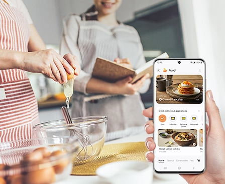 Enjoy a simple and fun way to cook and plan meals using SmartThings Cooking in the SmartThings App*. You can monitor and control the microwave oven's functions and settings. It recommends a cooking mode, suggests personalized recipes and meal plans, enables grocery shopping and offers an interactive experience.