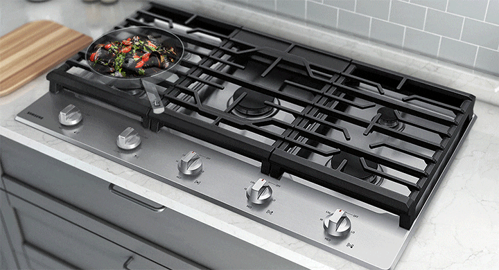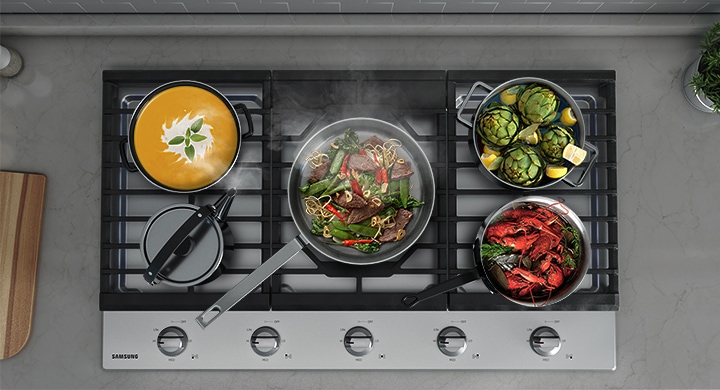 Powerful burners have the flexibility to accommodate a number of dishes at once.*Images are for illustration and demonstration purposes only. A 36 model with 5 burners is shown. A 30 model comes with 4 burners.