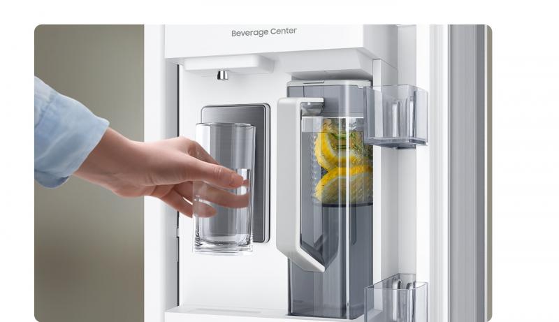 Enjoy access to refreshingly cold and flavoured water. The Beverage Center* inside the fridge is easily accessible, but stays more hygienic. It has a dishwasher safe** and BPA free*** Autofill Pitcher for purified water, which can be infused with fruits or herbs, so it's always ready to serve.