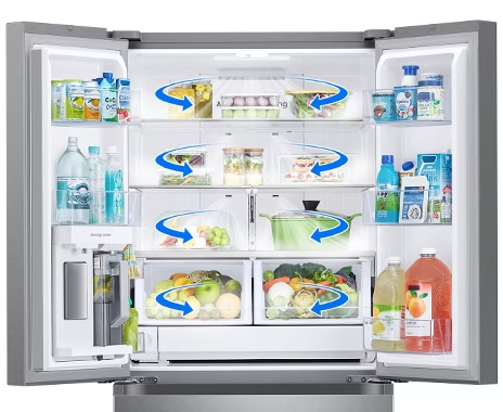 Make sure that all of your food is properly cooled.All-Around Cooling cools each compartment evenly from corner to corner.It continually checks the temperature and circulates cool air through strategically placed vents.So food is kept at the optimum temperature and cools evenly from corner to corner