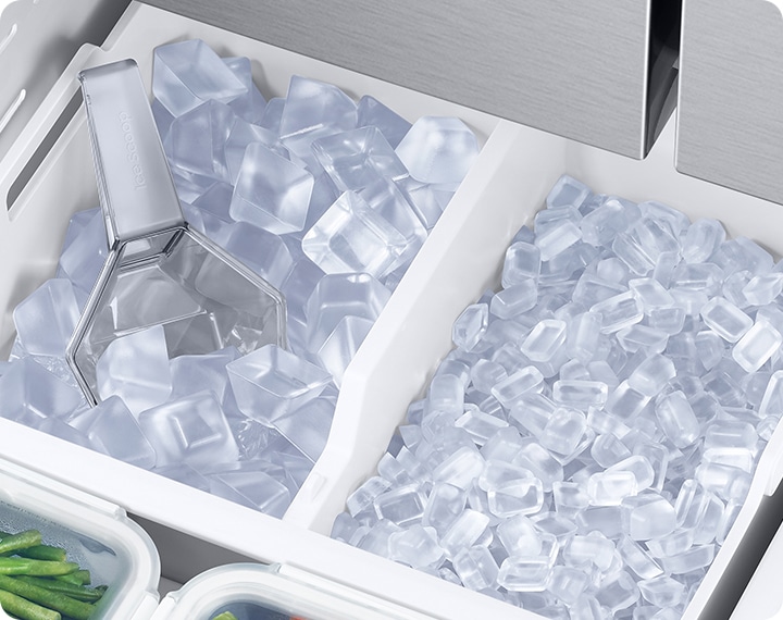 Make sure you are always prepared for any occasion with two different types of ice. The Dual Auto Ice Maker makes both Cubed Ice and Ice Bites, which chill drinks much faster. It can make 5.6lbs of ice a day and store up to 6.6lbs*. And, as it’s in the freezer, it frees-up space in the fridge.