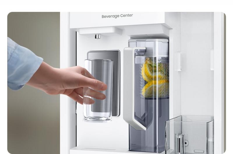 Enjoy plenty of refreshingly cold and flavored water. The Beverage Center™ is inside the fridge, so it is less likely to get contaminated. As well as a water dispenser, it has a dishwasher safe* and BPA free** AutoFill Water Pitcher for purified water, which can be infused with fruits and herbs.