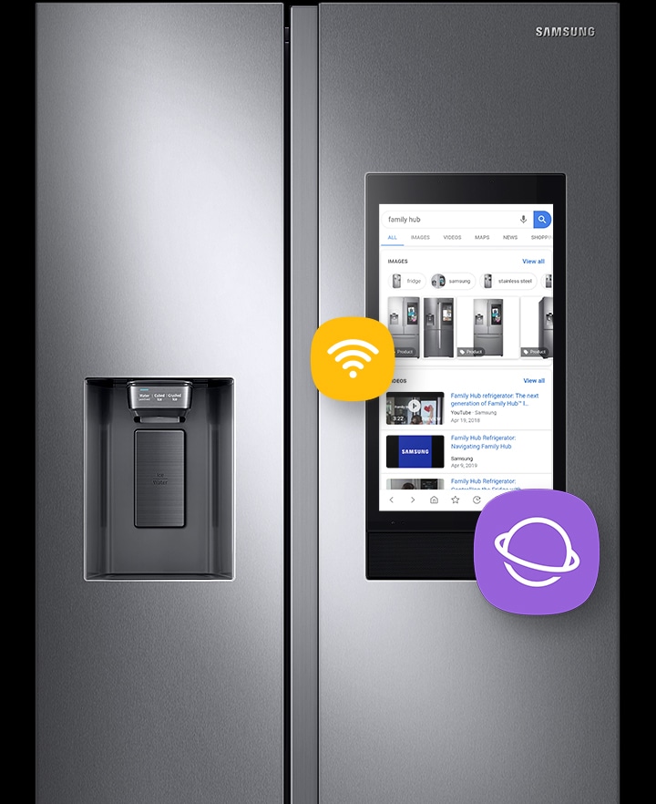 Wi-Fi enabled Family Hub provides a fun way to share pictures, manage family's calendars and stay connected right on your refrigerator. You can also watch TV*, use smartphone** Apps and play music on Spotify.