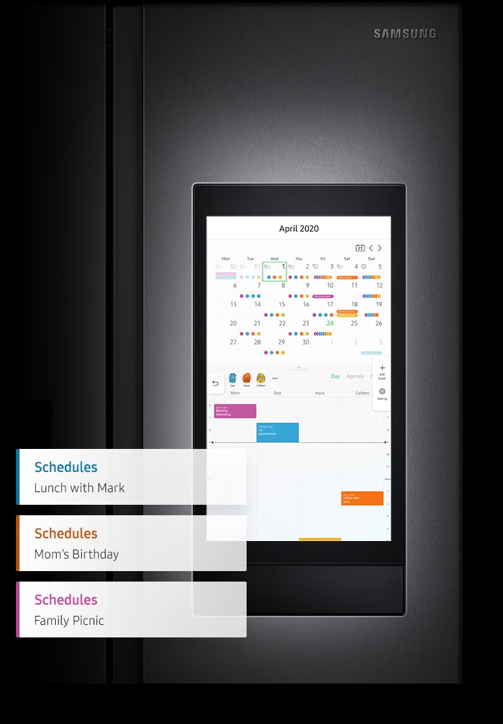 Enjoy an effective way to communicate with your family. Using the Memo, To-do and Gallery Apps you can quickly share memos, task lists, instructions, activity schedules and photos. When anyone steps close to the fridge the home screen turns on, so they can see what youve put.