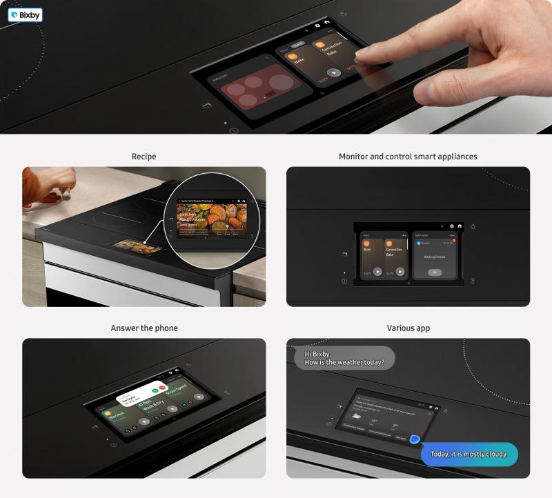 * Recipe recommendations and Bixby accessible through the AI Hub utilize AI (based on deep learning models, which may be updated periodically to improve accuracy). To access AI recipe recommendations, click on the 'Food' service within the SmartThings App in the AI Hub menu. A Wi-Fi connection and a Samsung account are required. You may need to use a separate device e.g. your laptop/desktop or mobile device, to create/log into a Samsung Account. If you choose not to log-in, you will not be able to enjoy any features available on AI Hub, such as the recipe recommendation and receiving phone calls. ** Applicable to certain range features only. Check the user manual for a full list of features that can be controlled/activated by a voice command. *** Bixby is Samsung’s brand of artificial intelligence (AI) / Internet of Things (IoT) voice assistant. Bixby service availability may vary depending on the country. Bixby recognizes certain accents/dialects of English (US, UK, Indian), Chinese, Korean, French, German, Italian, Spanish and Portuguese. A Samsung account log-in and Wi-Fi connection are required. **** As of January 2024, recipe recommendations are based on the user’s favourite ingredients, disliked ingredients, ingredients to avoid (for allergies or other reasons), special diets, cooking skills and household size. ***** Recipe recommendations and Bixby accessible through the AI Home utilize AI (based on deep learning models, which may be updated periodically to improve accuracy). To access your AI recipe recommendations, click on the 'Food' service within the SmartThings App in the AI Home menu. A Wi-Fi connection and a Samsung account are required. You may need to use a separate device e.g. your laptop/desktop or mobile device, to create/log into a Samsung Account. If you choose not to log-in, you will not be able to enjoy any features available on AI Home, such as the services available on the SmartThings App and the phone call features. ****** Does not mean all services available on the AI Home are AI or generate information or outcome using AI. The services/features that use deep learning models are limited to [AI Smart Dial, AI Opti Wash & Dray, Voice enabled with Bixby]. The learning models may be updated time to time and may generate incomplete or incorrect information.