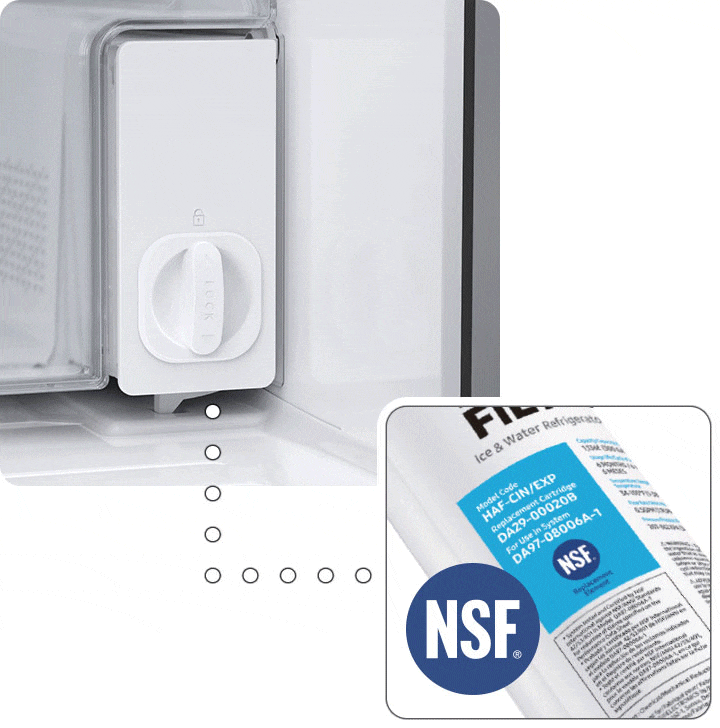 The Internal Water Filter is aligned with the refrigerator's minimalist built-in look, with nothing showing on the outside.