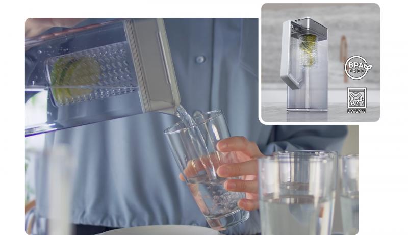 Enjoy refreshingly cold and flavoured water immediately. The dishwasher safe* and BPA free** 48oz(1.4L) AutoFill Water Pitcher automatically fills with purified water when put in the fridge. Using a built-in Infuser***, you can also add fruits or herbs to create deliciously flavored beverages.