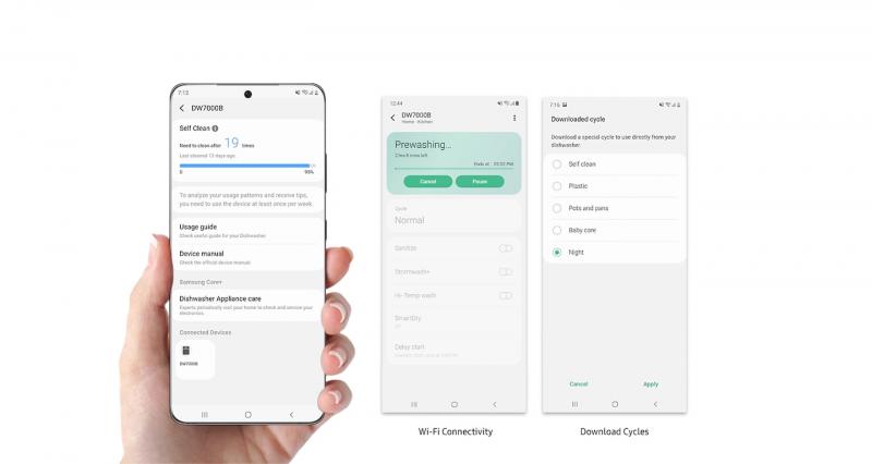 Customize your cleaning experience whenever you want using the SmartThings App.* The Download Cycles option lets you choose from 5 separate cleaning options and download the one you want. Simply select the “Night”, “Self Clean”, “Pots and Pans”, “Plastic”or “Baby Care” cycle.