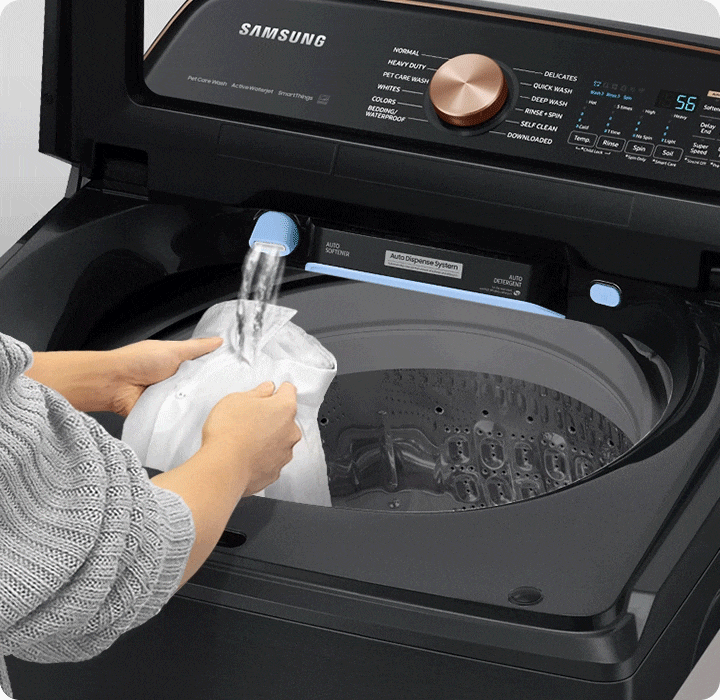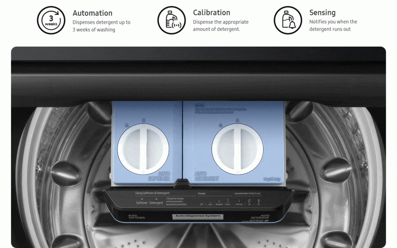 Fill your detergent drawer with up to 12 loads of detergent and softener, and the washer will accurately dispense the right amount of cleaning solution for an optimal wash, every time.