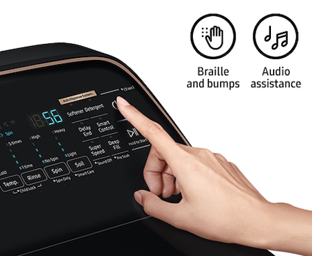 Aiding the visually and hearing impaired, your washer and dryer now features audio assistance, playing a different sound for each option, and braille right next to key control panel buttons.