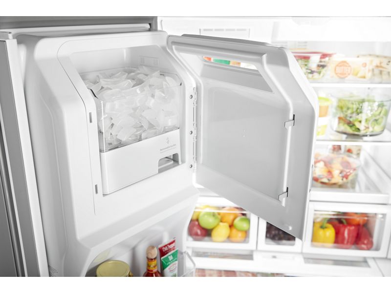 Get an extra full shelf in the refrigerator with an ice bin that's been moved to the door.
