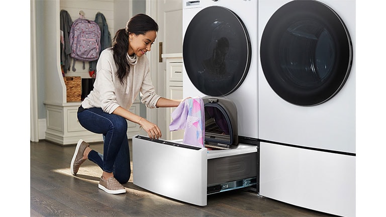 Wash small loads that can't wait or two loads at once with the LG SideKick®️ Pedestal Washer.³