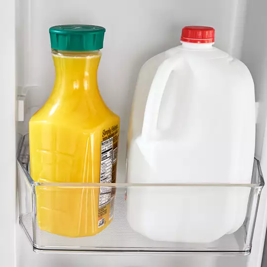 Shift the Adjustable Door Bins up or down to fit tall bottles or snack packs where your family can easily reach them. The see-through bins let everyone spot what they need in a glance and you can move them again whenever routines change to keep the door organized.