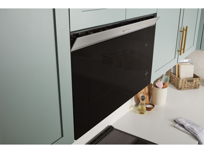 Elevate your kitchen with style that stands out and a microwave that fits in thanks to the Flush Built-In Design*. When closed, the door sits flush with standard depth cabinets for a sleek, seamless look.